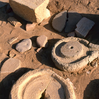 Yemen. Baraqish, grinding stones near Temple of Athtar