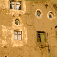 Yemen. Amran house and child at window