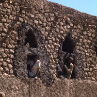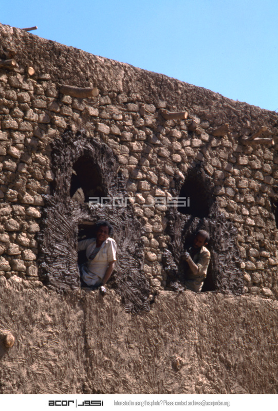 Yemen. Plasterers at work, Farwa village, south of Sa'ada