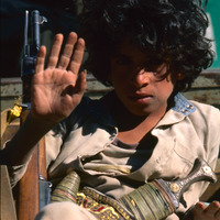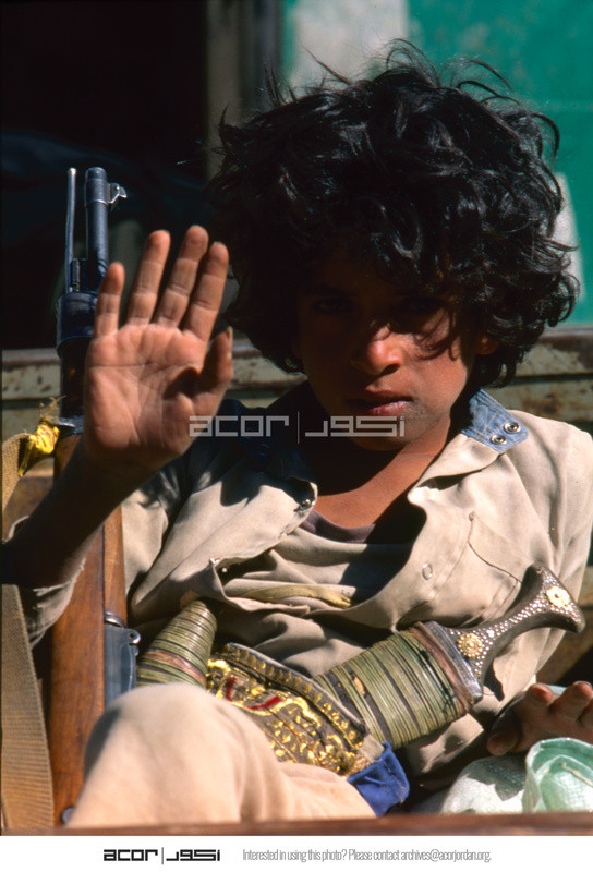 Yemen. Souq at-Talh, boy with Kalashnikov