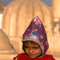 Yemen. Sa'ada, little girl and tombs of Zaidi imams