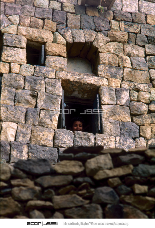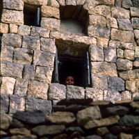 Yemen. Hajjarah, Jabal Harraz, child at window
