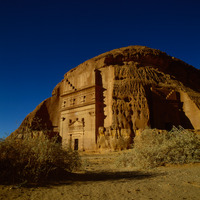 Saudi Arabia. Mada'in Saleh, Khuraimat, large tomb façade with sphinxes, tomb 100