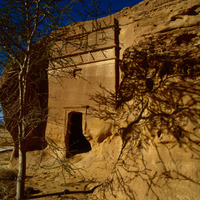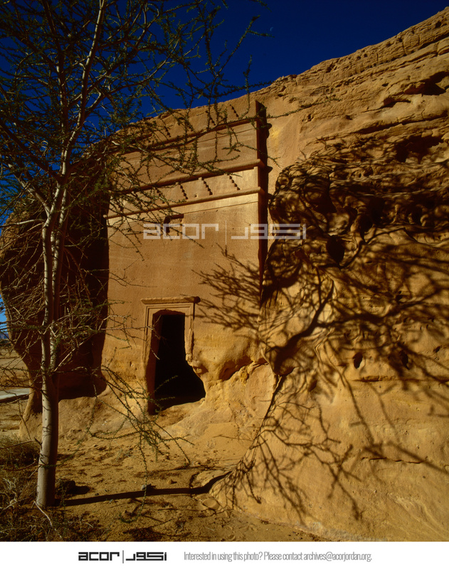 Saudi Arabia. Mada'in Saleh, Khuraimat, tomb with double crowstep design