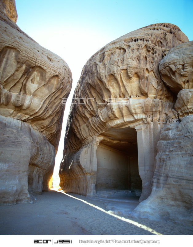 Saudi Arabia. Mada'in Saleh, Jabal Ithlib, Diwan and entrance to Siq