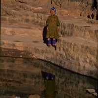 Yemen. Kawkaban, near Sana'a, girl by cistern