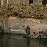 Yemen. Thula, near Sana'a, women collecting water