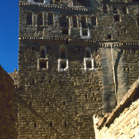 Yemen. Thula, near Sana'a, house façade