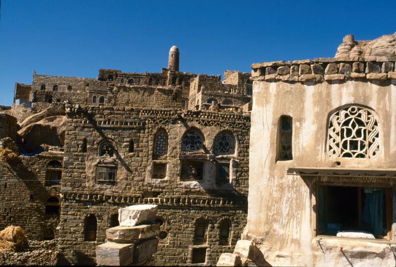 Yemen. Thula, near Sana'a, house façades