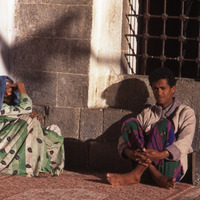 Yemen. Sana'a, people in Narthex of the Bakiriyya Mosque