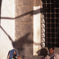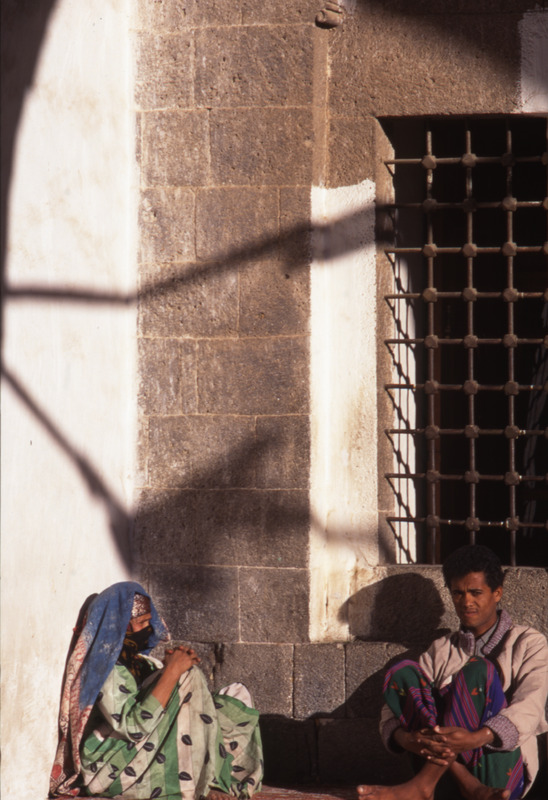 Yemen. Sana'a, people in Narthex of the Bakiriyya Mosque