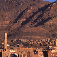 Yemen. Sana'a, Jabal Nuqum and old houses