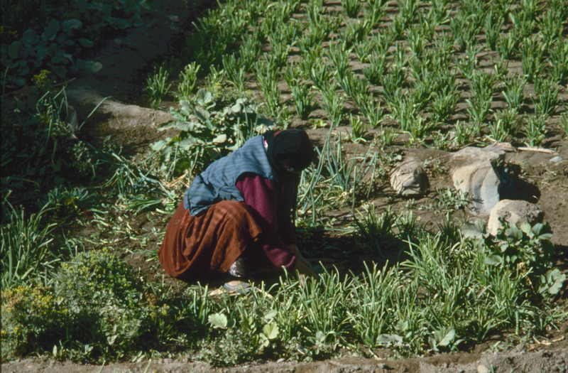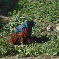 Yemen. Sana'a, woman working in garden in Old city