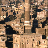 Yemen. Sana'a, house façades west of Bayt al-Jadid