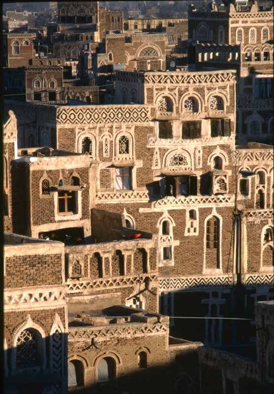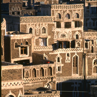 Yemen. Sana'a, house façades west of Bayt al-Jadid