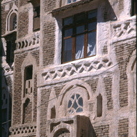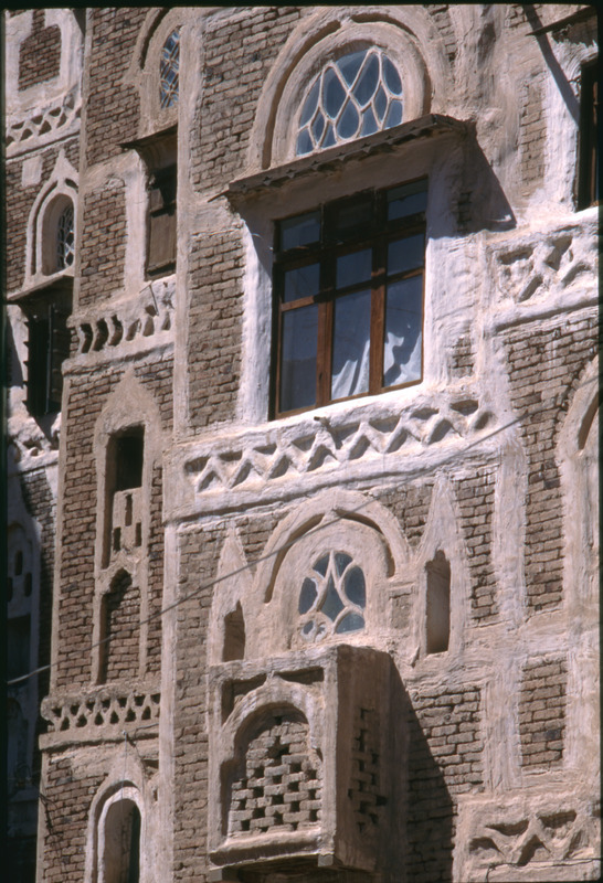 Yemen. Sana'a, detail of house façade