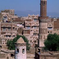 Yemen. Sana'a, minarets of Masjid Ali and Shahidayn Mosque