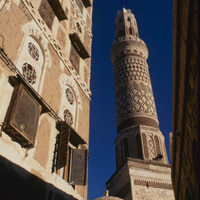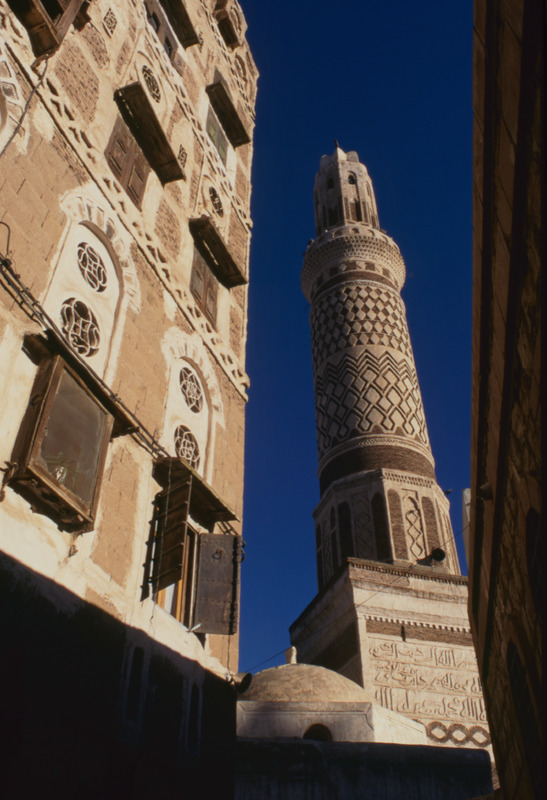 Yemen. Sana'a, minaret of Salah ad-Din mosque