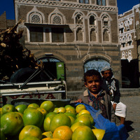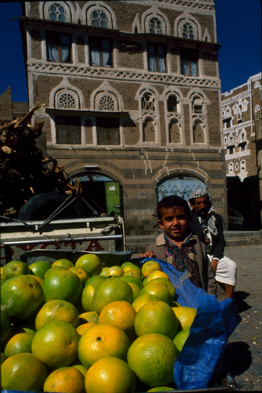 Yemen. Sana'a, young orange seller