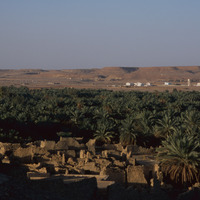 Saudi Arabia. Dawmat al-Jandal (Jawf), Qal'at al-Marid, old town and palm trees