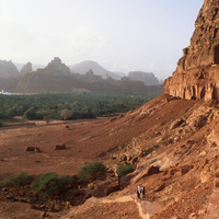 Saudi Arabia. Khuraybeh (Dedan) al-Ula view from Lion Tombs to mountains