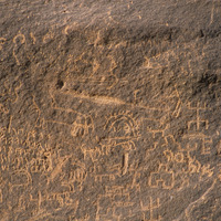 Saudi Arabia. Al-Ula, Jabal Ikmah, rock drawings and inscriptions