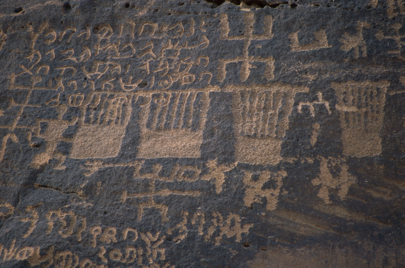 Saudi Arabia. Al-Ula, Jabal Ikmah, rock drawings and inscriptions