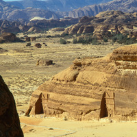 Saudi Arabia. Mada'in Saleh, view south west from Jabal Ithlib and south end of Qasr al-Bint