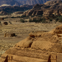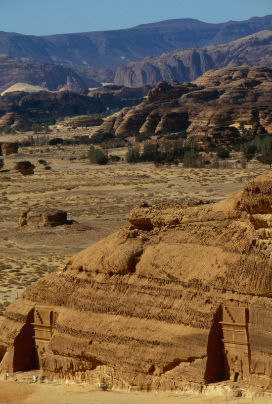 Saudi Arabia. Mada'in Saleh, view south west from Jabal Ithlib and south end of Qasr al-Bint