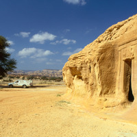 Saudi Arabia. Mada'in Saleh, Qasr al-Bint, tomb on south end