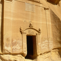 Saudi Arabia. Mada'in Saleh, Qasr al-Bint, tomb on south end