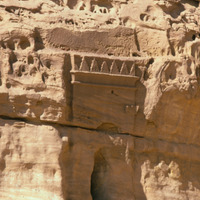 Saudi Arabia. Mada'in Saleh, Qasr al-Bint, tomb on west side