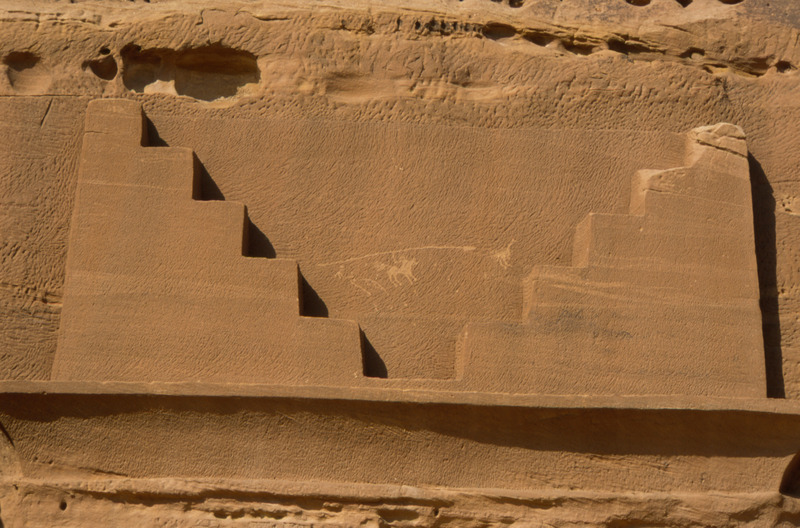 Saudi Arabia. Mada'in Saleh, tomb 74, incised hunting scene