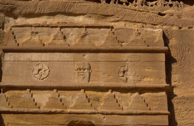 Saudi Arabia. Mada'in Saleh, tomb 75, detail of carving