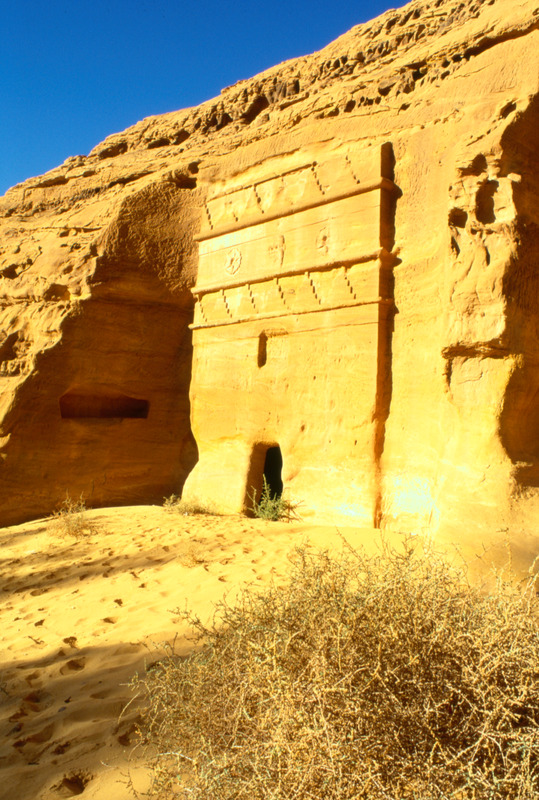 Saudi Arabia. Mada'in Saleh, Khuraimat Tomb with double crowstep design