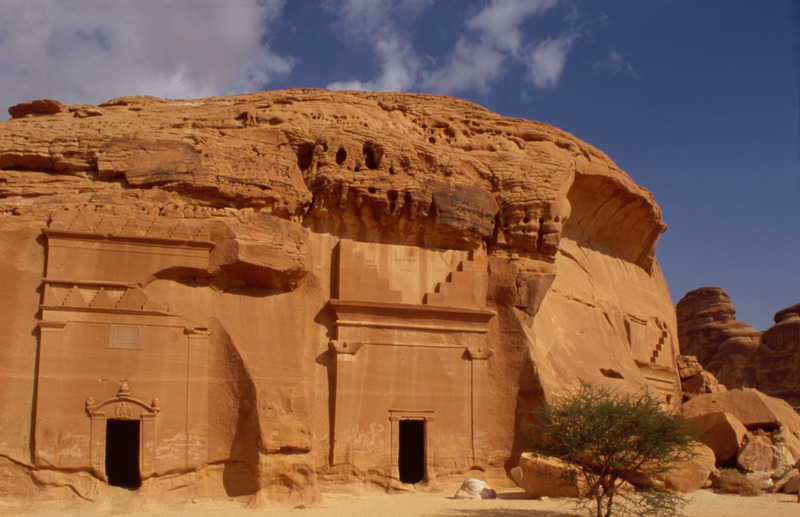 Saudi Arabia. Mada'in Saleh, tomb 39 (1BC/AD) (left) and 38