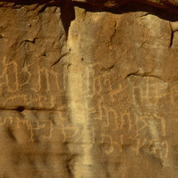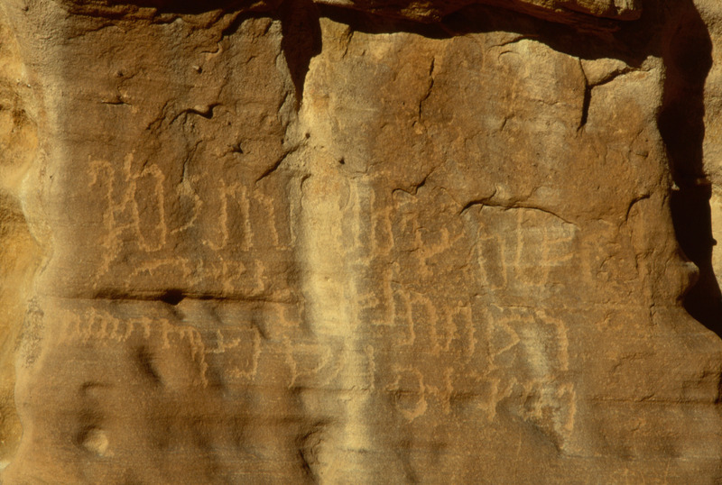 Saudi Arabia. Mada'in Saleh, Jabal Ethlib, Nabataean inscription