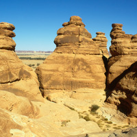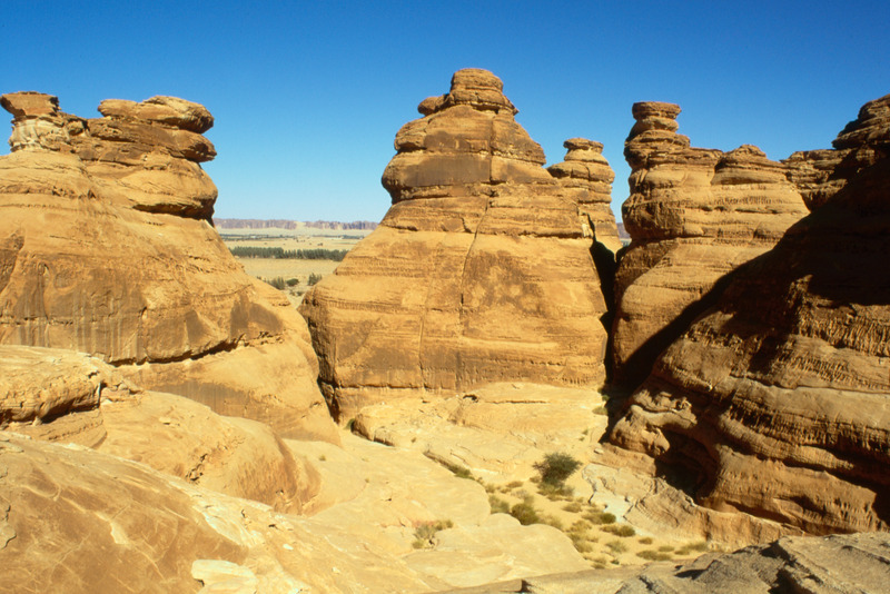 Saudi Arabia. Mada'in Saleh, Jabal Ethlib, open area inside Siq