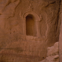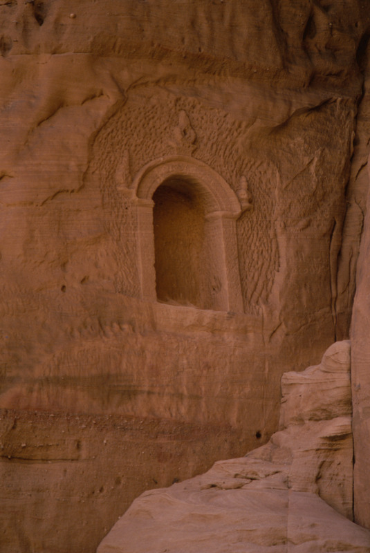 Saudi Arabia. Mada'in Saleh, Jabal Ethlib, niche near Siq