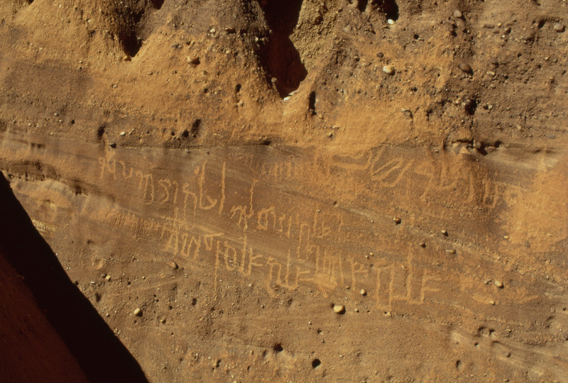 Saudi Arabia. Mada'in Saleh, Jabal Ethlib, Nabataean inscription
