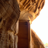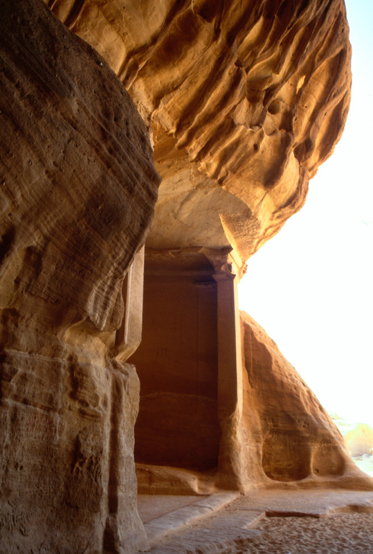 Saudi Arabia. Mada'in Saleh, Jabal Ethlib, diwan at entrance of Siq