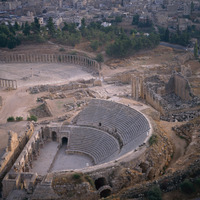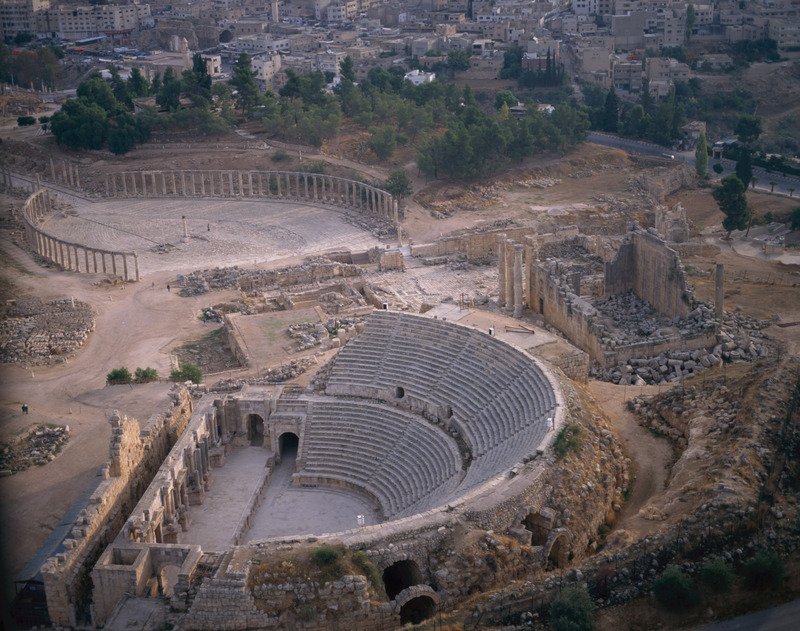 Jordan. Jerash, South Theater, Zeus Temple and Oval Piazza
