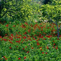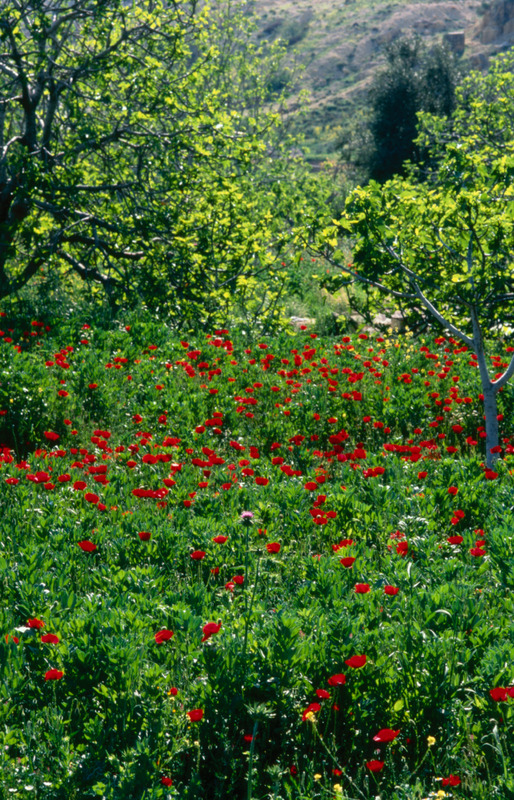 Wadi Seer, poppies (Papaver subpiriforme), and thistles (Cirsium alatum)