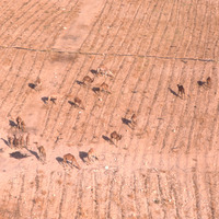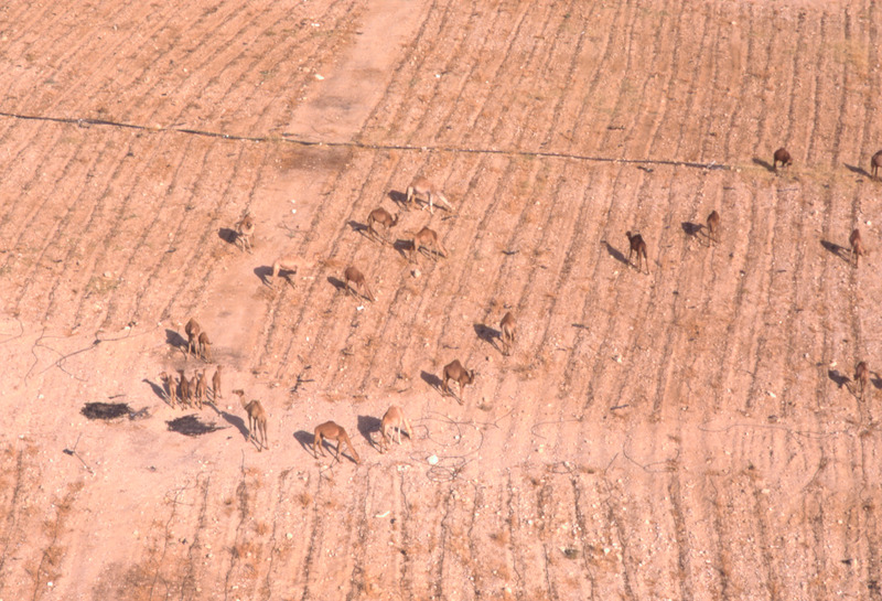 Jordan. Wadi Araba, camels in harvested field