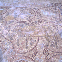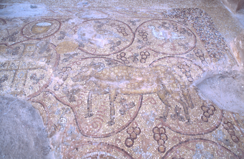Safi, Lot's church, detail of bull in mosaic in front of apse