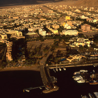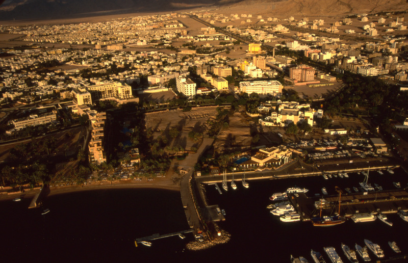 Aqaba, marina, early Islamic city and modern town from south
