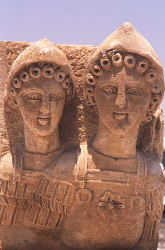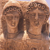 Khirbet edh-Dharih, high relief of two male heads, Nabataean