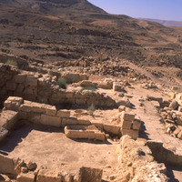 Khirbet edh-Dharih, view north from houses to temple