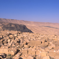Khirbet et-Tannur, view east along Wadi Hasa and volcanic rock