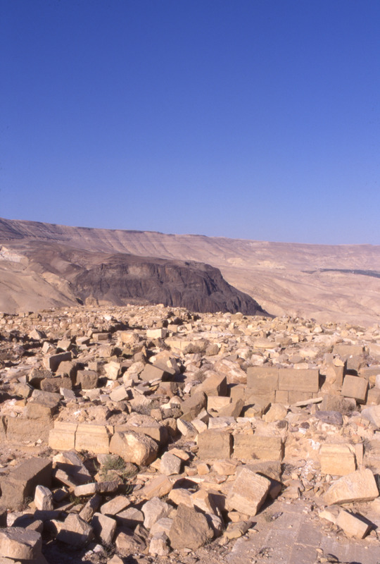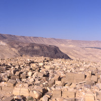 Khirbet et-Tannur, view east along Wadi Hasa and volcanic rock